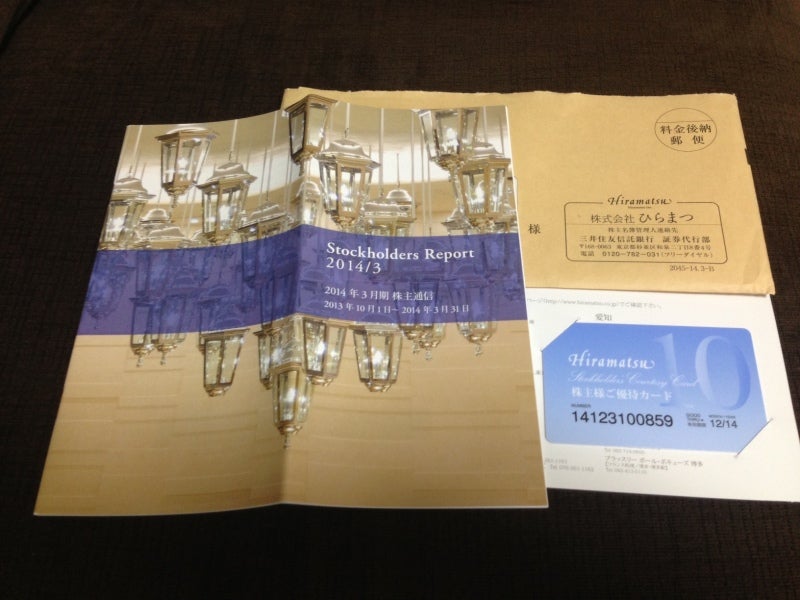 ひらまつ(2764)から株主優待カードが到着&1Q決算。