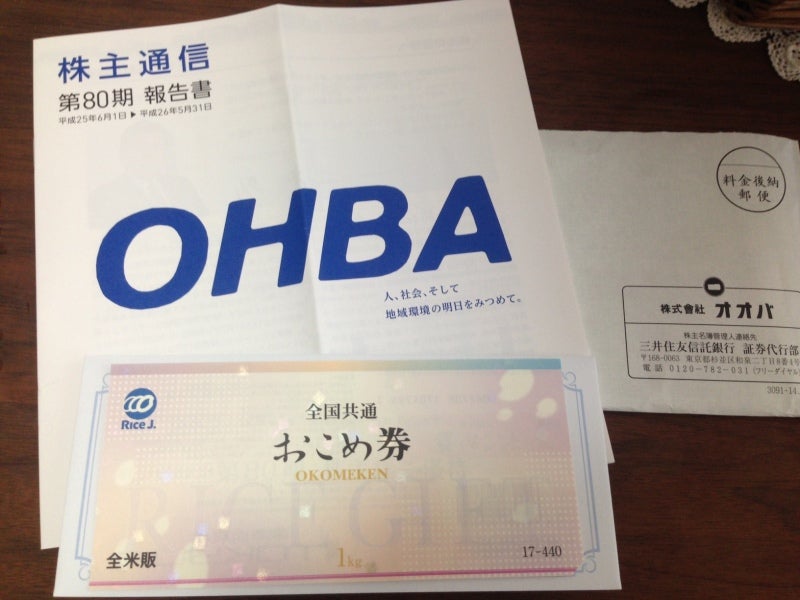 単元株以上の株主に対して、お米券を1枚進呈しておりますので、
