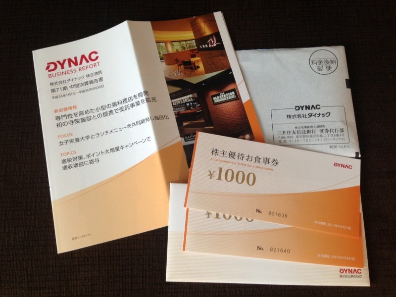 2,000円相当の株主優待食事券が進呈されますので、配当金と合計した