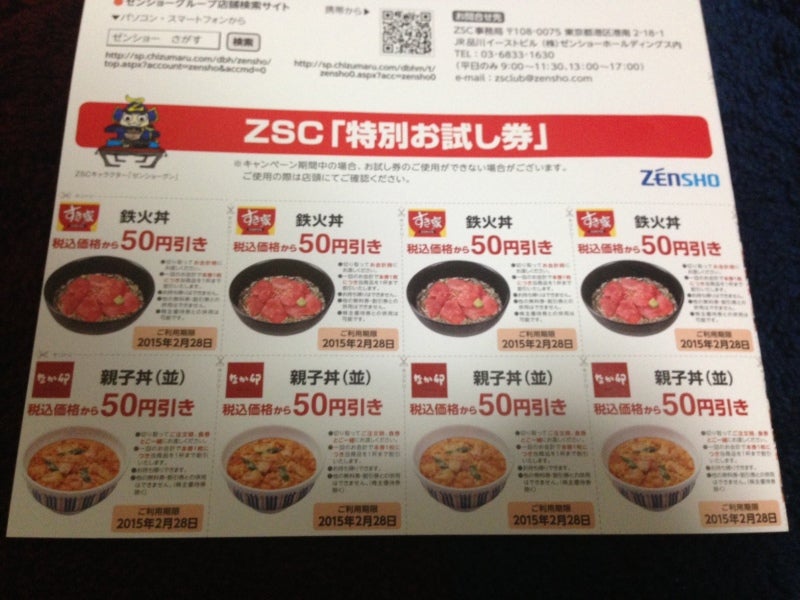 「すき家」と「なか卯」の割引券です。鉄火丼と親子丼が50円引き
