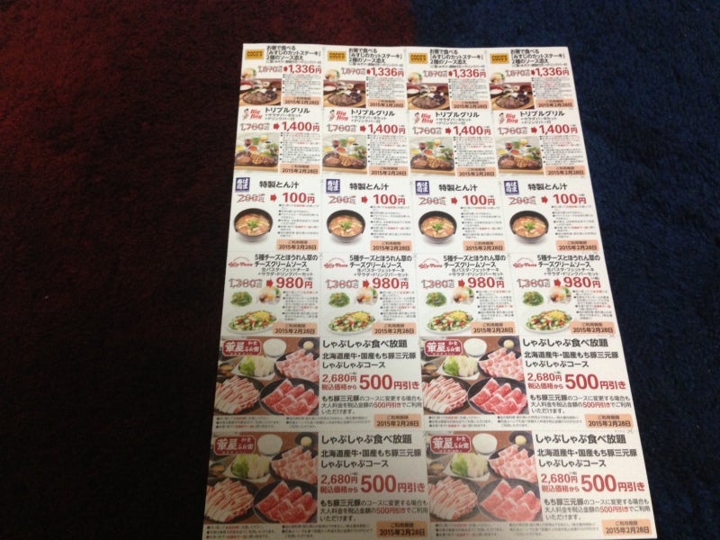 の割引券・無料券です。詳細は写真を拡大した上で目を凝らして
