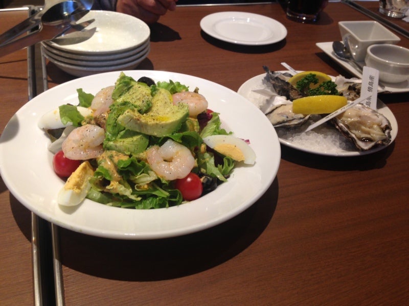 まずはアボカドサラダと牡蠣4ピースから。牡蠣は日本産中心。