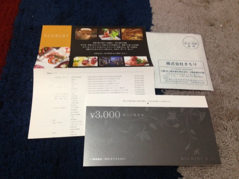 きちりは株主優待制度を実施しており、100株以上の株主に対して3,000円