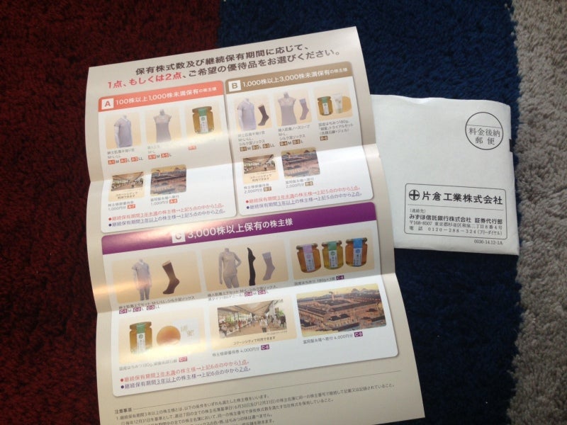 このたび片倉工業は株主優待制度を導入しまして、100株以上保有の