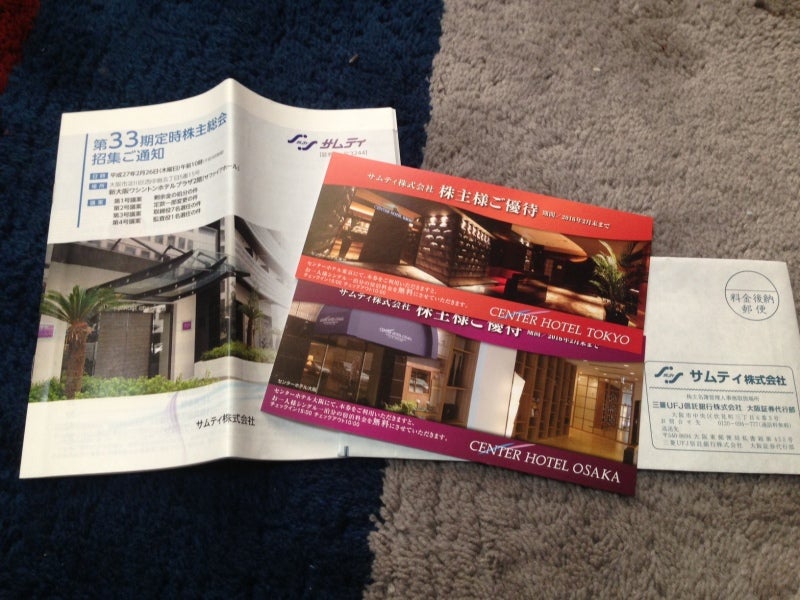 ホテル宿泊株主優待のサムティ(3244)から、優待券が到着。対象ホテル追加は?