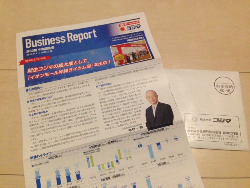 ビックカメラ傘下のコジマ(7513)から株主優待がきました!