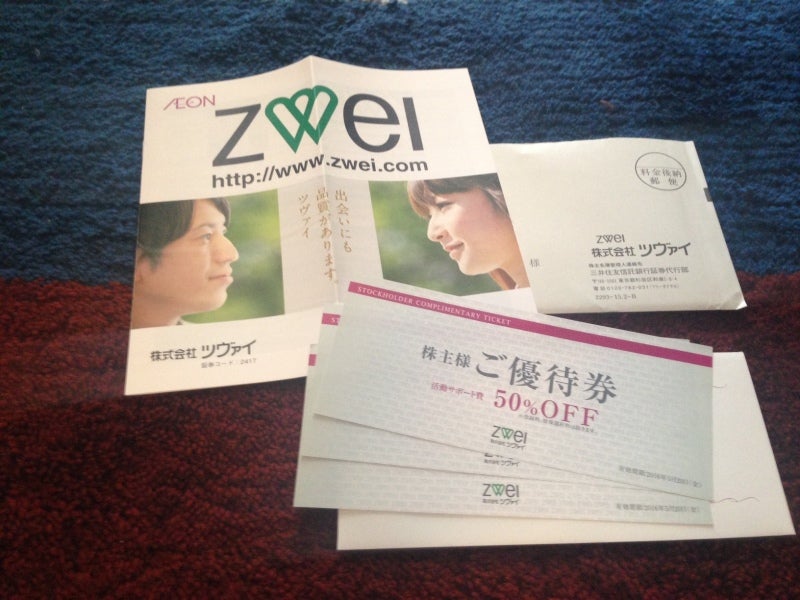 婚活銘柄・ツヴァイ(2417)から株主優待の活動サポート券がきますた!