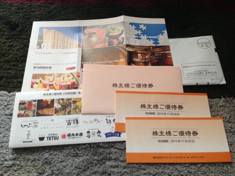 株主に対して、年2回3,000円ずつのお食事券を配布しておりますので