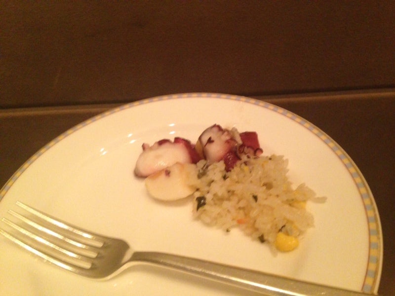 長い行列に並んで手にした料理はたったこれだけでした・・・。