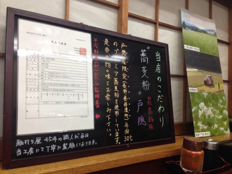 当店のウリは、店内にも証明書?が掲示してある戸隠のプレミアムそば粉